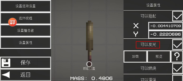 6、最后设置属性,点击加载添加一张图片,将可以发光以及其他属性全部添加;