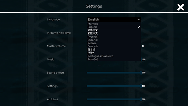 1、首次进入游戏后,建议先将语言切换为中文。点击主界面第四个选项进入设置菜单。