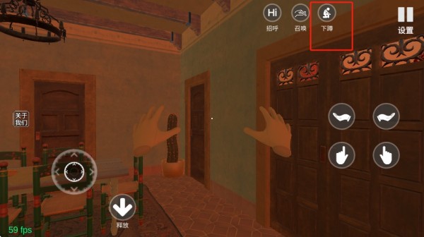 3、点击下蹲按钮可实现下蹲或坐下动作;