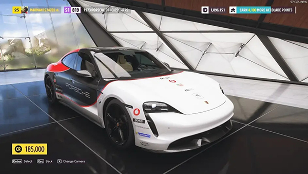 地平线5欢迎包中的保时捷才是最快速的汽车之一,最快可达到434公里/小时,加速等级位9.7