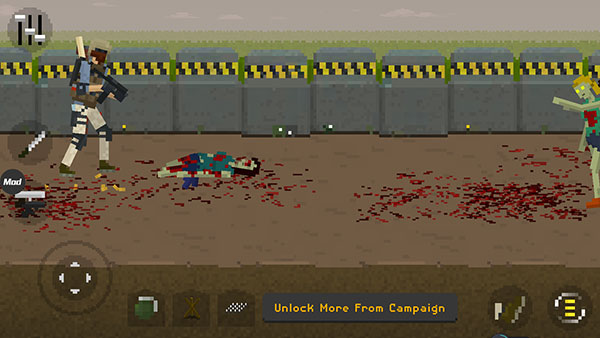3、进入关卡后,僵尸将陆续从屏幕边缘逼近。此时可灵活运用陷阱布置或切换枪械、近战武器进行反击。值得注意的是,攻击僵尸头部并非最佳选择——准确打击其下半身才能有效使其瘫痪;