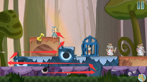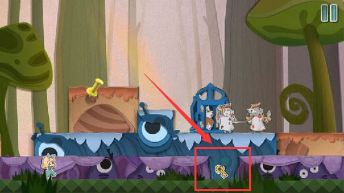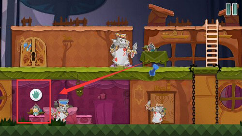 8、待巡逻兵行至右侧,迅速将蓝色纸片左移将其隔断,随后返回使用钥匙开门,成功营救老鼠即完成本关。