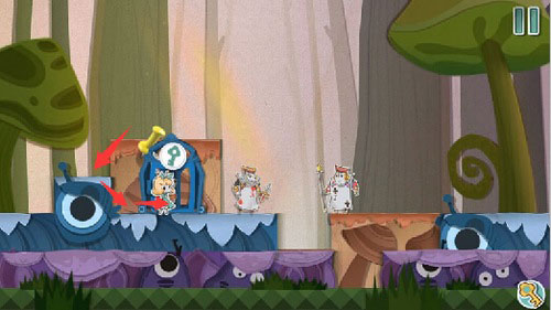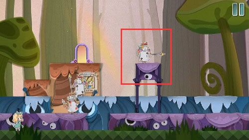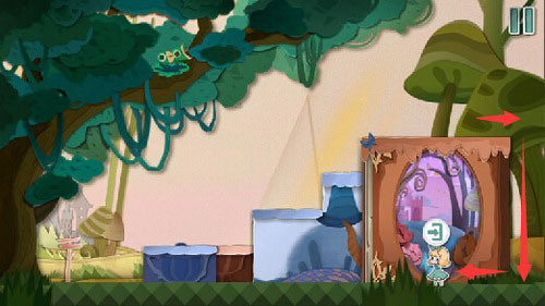 3、爬上梯子,按下拉杆,使“变小药水”所在的纸片升高。