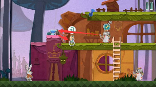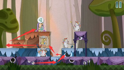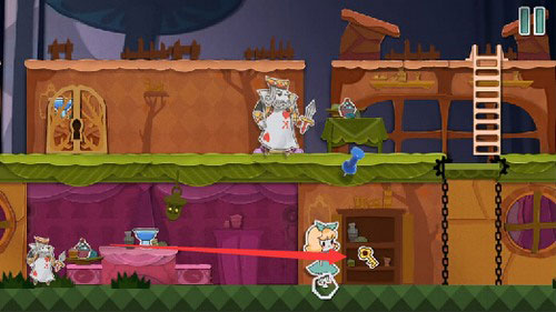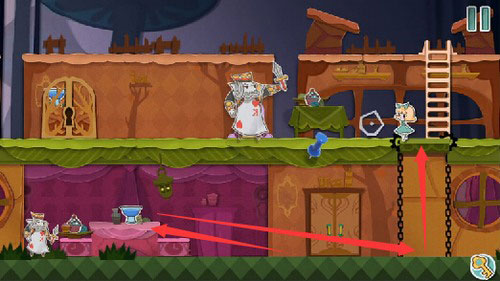 2、食用蛋糕后体型变大,向前推进可驱散挡路的扑克兵。
