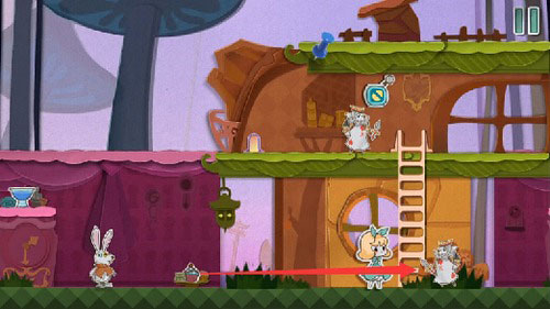5、按教学指示,将红色纸片向左移动,拼合兔子形象以触发对话。