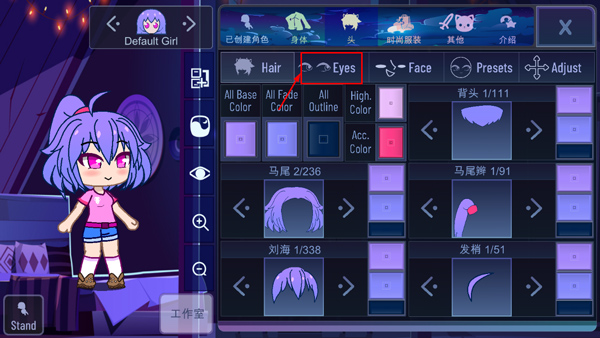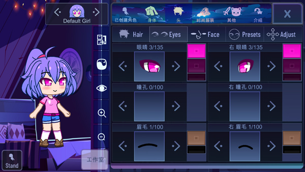 3、在此界面中,你可以根据个人审美细致调节角色的眼睛形状、瞳孔颜色、眉毛样式等细节;