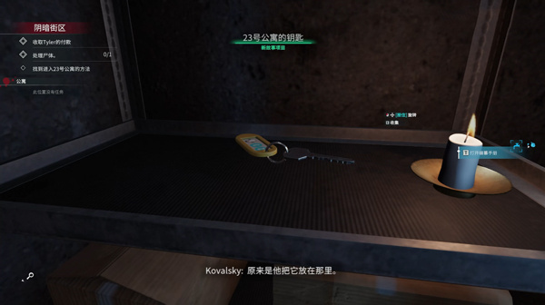 4、玩家首先需要根据左上角任务引导进行操作,并找到进入房间的钥匙;