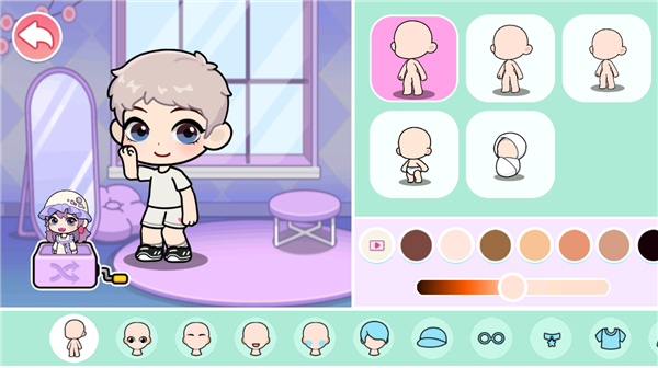 4、选中场景里的角色后,可在右下角切换不同的表情状态或更换服装造型。