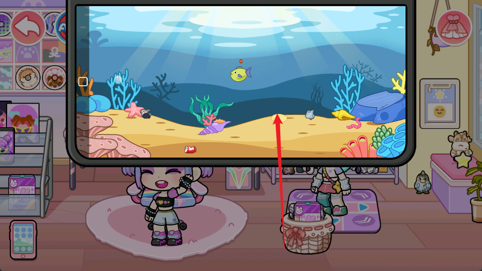 5、将场景中的道具或食物拖放到角色手中,即可触发对应的互动效果。