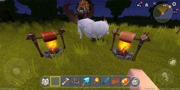 野人仅在夜晚出现。首先在地面放置篝火,并用火炬点燃,随后将生肉置于篝火上烧烤。