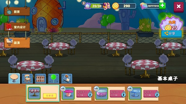 5、自由设计属于你自己的比奇堡餐厅,从布局到装饰,打造个性空间。