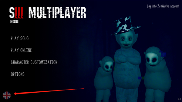 1、进入游戏主界面后,默认显示英文,点击左下角的国旗图标;