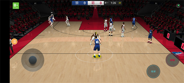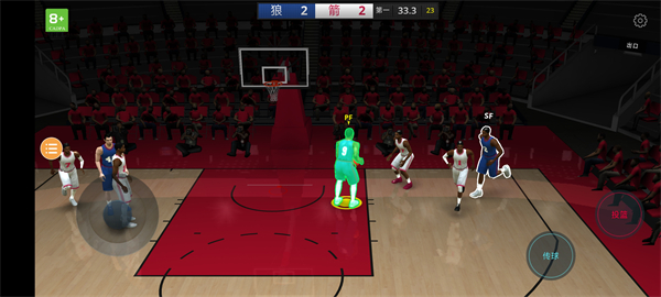 3、当我方持球时,右侧功能键分别对应【传球】与【投篮】操作;