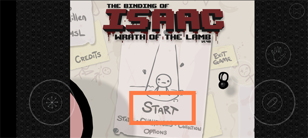 1、启动《以撒的结合》移动版后,点击【START】按钮进入角色选择界面。