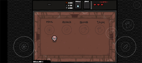 以撒的结合移动版是一款由粉丝自制的非官方安卓移植游戏,本作借助定制化的HTML5与Rufe播放器技术打造,高度还原了原版Flash游戏的经典体验,让玩家在掌上也能重温这一佳作。游戏针对移动设备进行了全面优化,支持全屏运行,采用八向移动配合四向射击的操作逻辑,并特别设计了适配触屏操作的双摇杆控制系统。