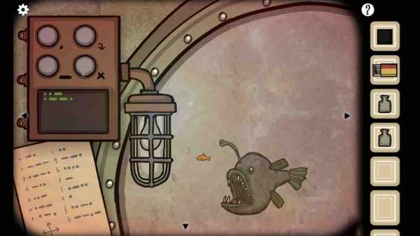 1、观察窗外出现的鮟鱇鱼,参照莫尔斯电码表,依次向其发送“up”和“left”指令,即可获得密码“ink”。