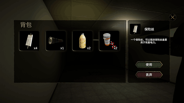 5、点击屏幕左侧背包图标,可查看途中收集的药品等道具。注意:某些恐怖实体会随时突袭,务必保持警惕