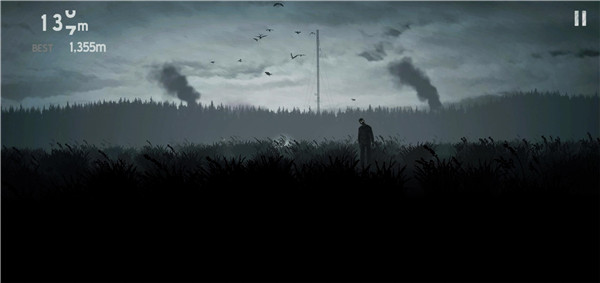 2、奔跑途中,光影交错间逐渐显现出破旧栅栏、孤零木桩与荒废农田,而更多则是从迷雾中缓缓逼近的狰狞丧尸。它们如潮水般围拢而来,将你拖入黑白灰交织的噩梦。此时你别无选择,唯有向前冲刺,争取一线生机。