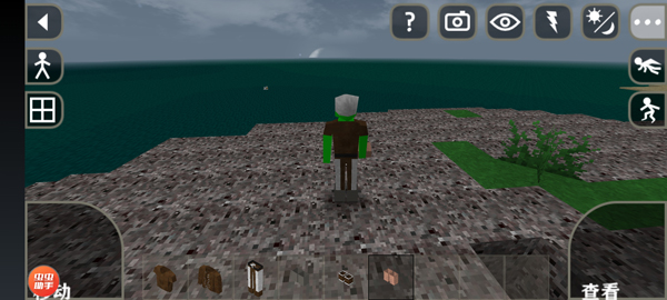 4、进入游戏后,采用横屏操作方式,通过虚拟按键控制角色移动与建筑搭建;