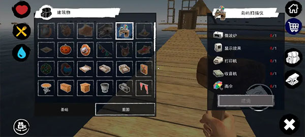 利用钩子从海面捞取木板、塑料、藻类、漂流箱等资源,每一件都可能成为你活下去的关键。
