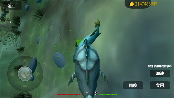 2、解锁强力物种:用金币兑换高级生物(如史前魔化绿食人鱼或巨型鲸类),凭借压倒性体型与属性制霸海域。