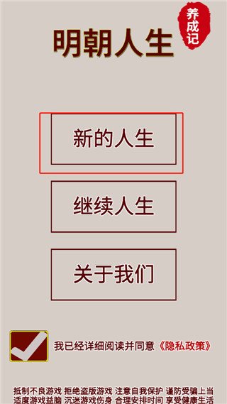 1、启动已下载安装的《明朝人生养成记》,点击“开启新的人生”进入游戏。