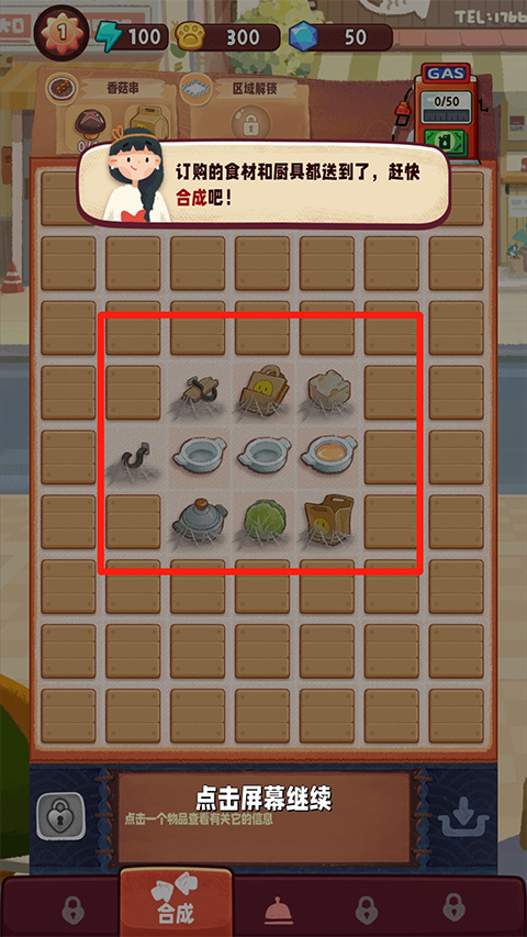 3、如图所示,所需食材与厨具已列于方框内,可开始进行合成操作,