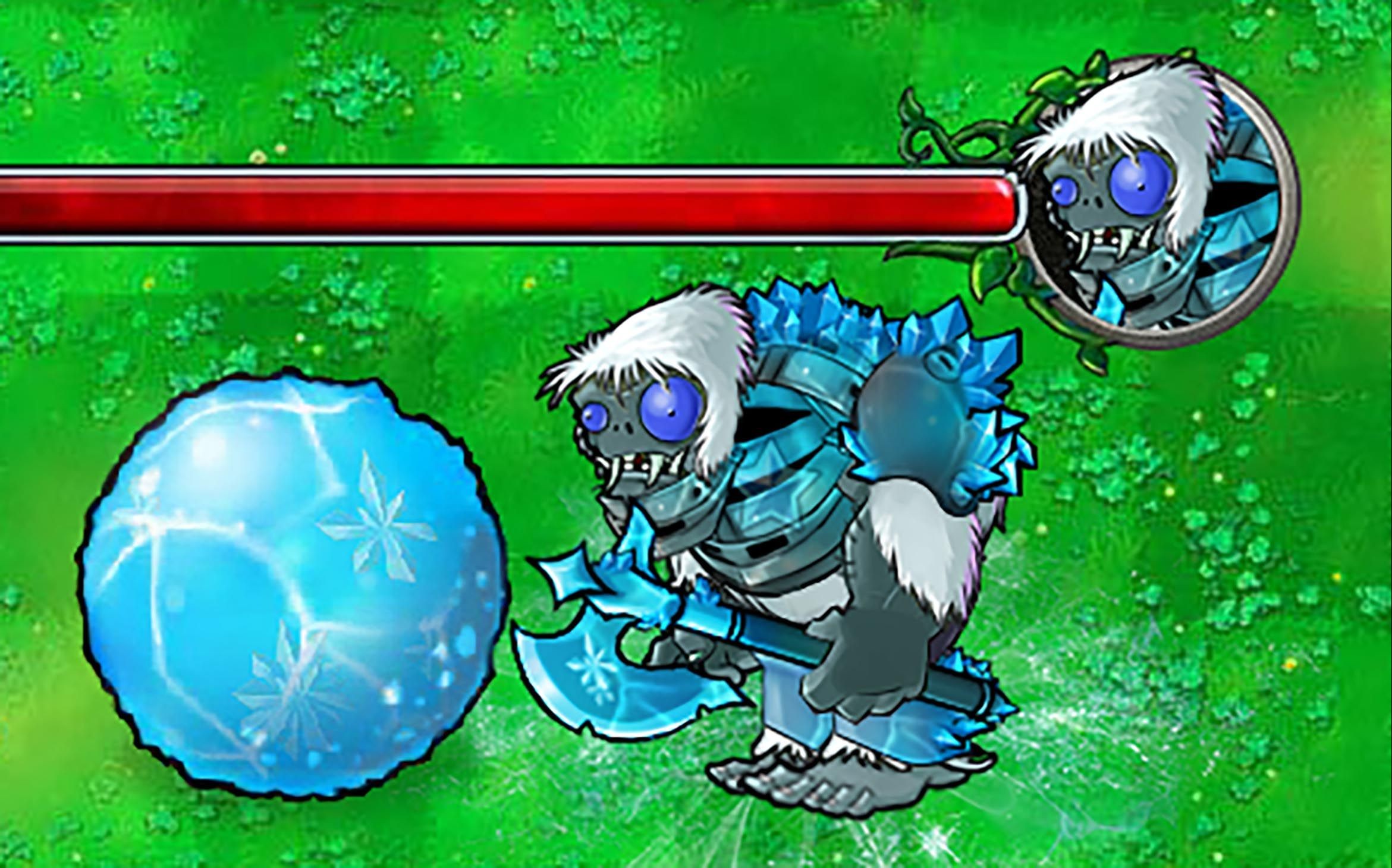 小型冰球:耐久值1800(可被击破),具备阻挡穿透子弹能力,移动速度中等,可碾压植物并留下冰道;若遇到可抵抗碾压的植物则立即破裂(类似爆胎)