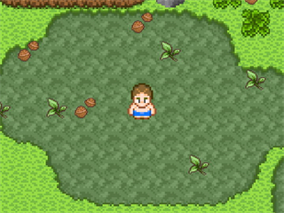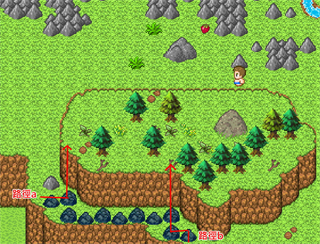 1. 在两棵树中间带坑的地图中,有一块大石头。反复敲击它有概率使其移动一格,类似推箱子玩法。将其推入坑中即可通行。