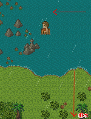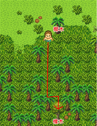3. 椰子林中有一条隐蔽小径通向下方,抵达沙滩后可击打椰子树获取小椰子。