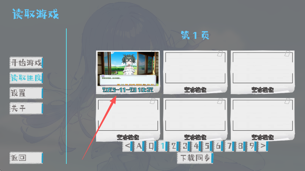 4、若想从上次中断处继续游玩,只需选择“读取进度”即可恢复存档状态
