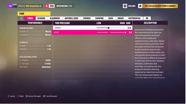 最后一步,将后轮胎压调至最高值,一台基础漂移战车就此成型!
