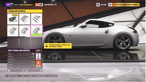 近年来,漂移文化热度持续升温,《极限竞速:地平线5》也深度融入这一玩法。需明确的是,漂移并非失控打滑——真正的漂移是在入弯、滑行至出弯的全过程保持可控状态。在尝试漂移前,合理的车辆改装至关重要。以下以Nissan 370Z为例进行说明: