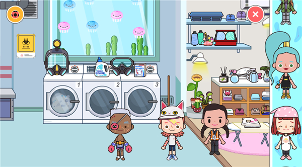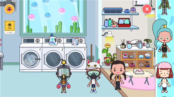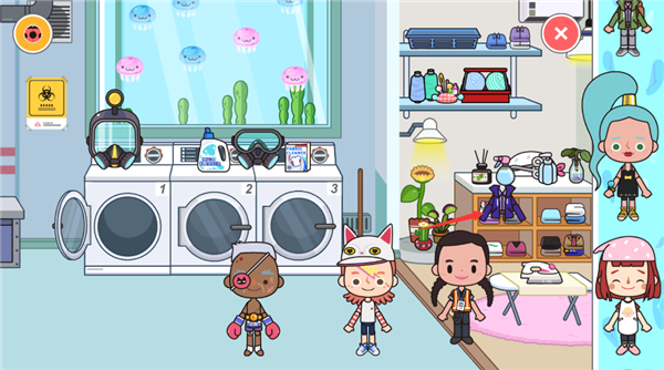 6、以洗衣房为例,点击洗衣机即可对内部衣物进行分类与整理。