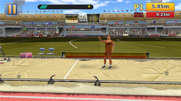 3、跳远:需先完成助跑,在接近起跳线时及时起跳。助跑速度与起跳时机共同决定最终成绩。