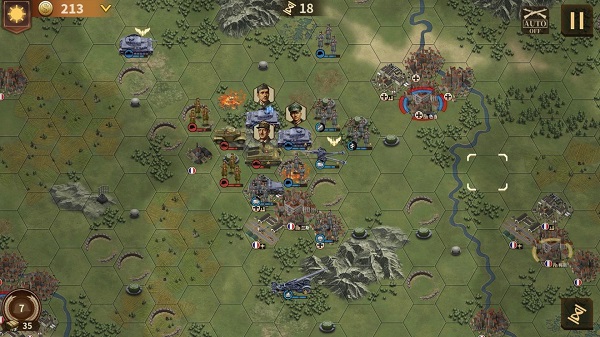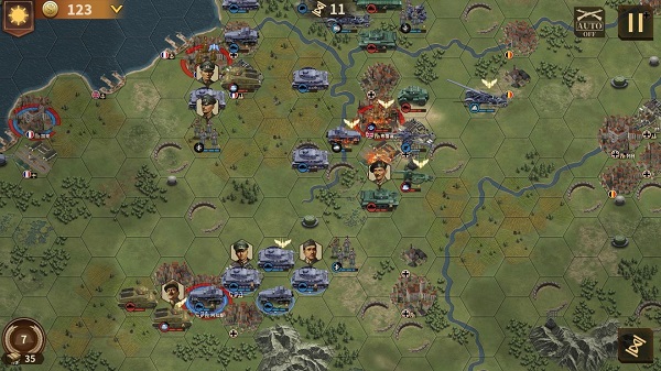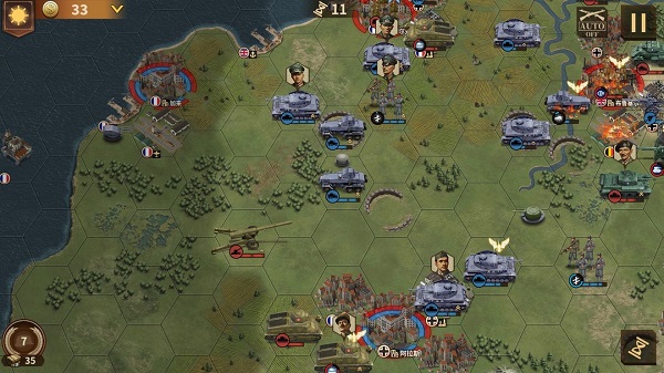 将军的荣耀3国际服是一款以二战为背景的回合制策略战棋手游,其美术风格硬朗写实,与战争主题高度契合。玩家需指挥多样化的兵种,在广阔地图上灵活部署,通过推进或迂回战术夺取关键要塞,集结优势兵力歼灭敌军,最终赢得战役胜利。