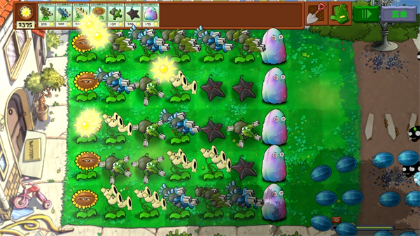 3、开局优先种植阳光生产单位,确保资源充足以购买后续战斗植物。