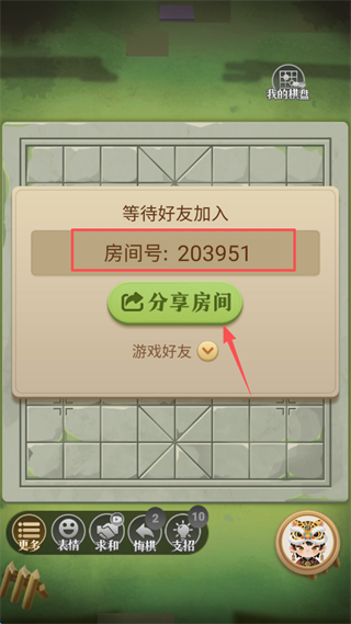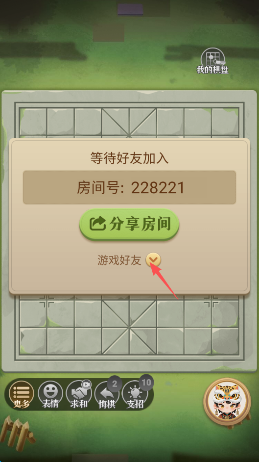 9、创建房间后,点击“分享房间”→“游戏好友”,系统将自动推送邀请列表。