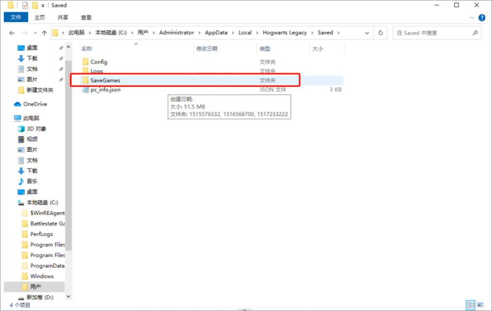 以《霍格沃茨之遗》为例,游戏结束后进入云电脑文件资源管理器,依次打开:
