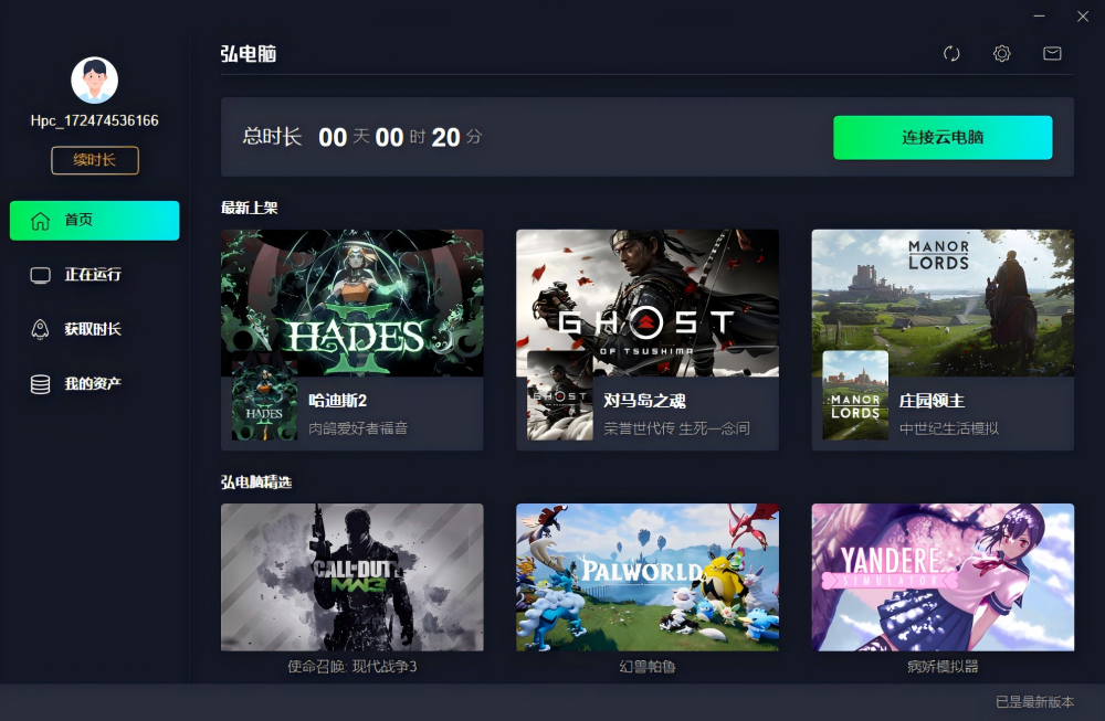 弘电脑电脑版是一款专为低配置设备用户及移动场景设计的高性能云电脑服务软件,通过云端算力释放本地硬件限制,让手机秒变掌上网咖、让老旧电脑焕发新生。无论你是想畅玩3A大作、进行专业级图形设计,还是远程办公、网站搭建与应用挂机,它都能提供稳定、灵活、即开即用的云端计算环境。