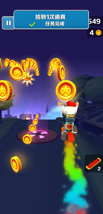 1、滑板:触发后立即原地复活,规避一次致命碰撞;使用方式为游戏中双击屏幕;单价300金币,是新手过渡期提升容错率的关键保障。