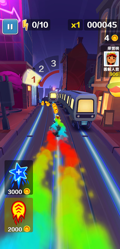 2、障碍双跳:瞄准障碍物顶部精准起跳,在接触瞬间二次发力跃升;成功后可直接登上行驶中的列车顶棚,获取额外金币与视野优势。