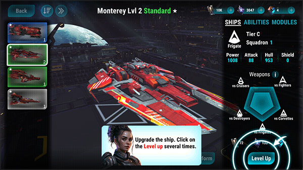 2、支持飞船装备合并与科技升级,打造最强舰队;