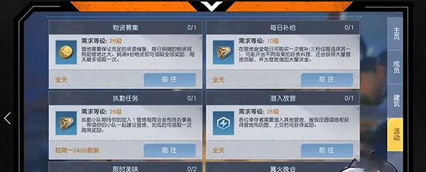 每日完成活跃度任务可领取资源宝箱,内含大量制造所需材料。坚持打卡,积少成多,为长期发展筑牢物资基础。