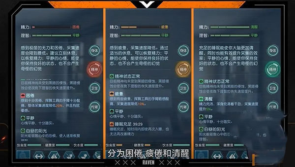 • 精神指标:困倦、疲倦、清醒三态直接影响采集速度。保持规律睡眠是恢复清醒状态最直接有效的方式;