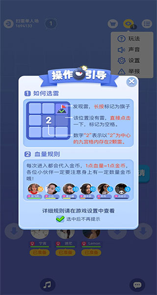 1、多人实时对战:支持最多5名玩家同时在线PK,与来自世界各地的对手同屏竞技,看谁更快更准地完成扫雷任务。