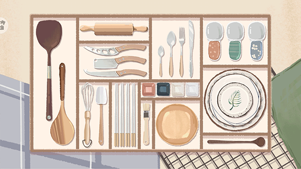1. 碗柜内餐具杂乱无章,玩家需重新归类摆放。