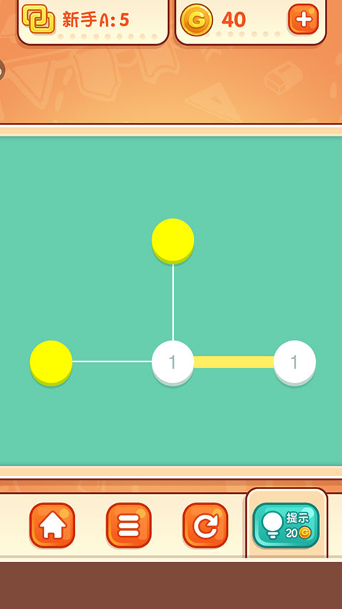 5. 数字连线模式:连接两个端点后,两端数字各减1;当所有端点数值归零,即完成当前关卡。