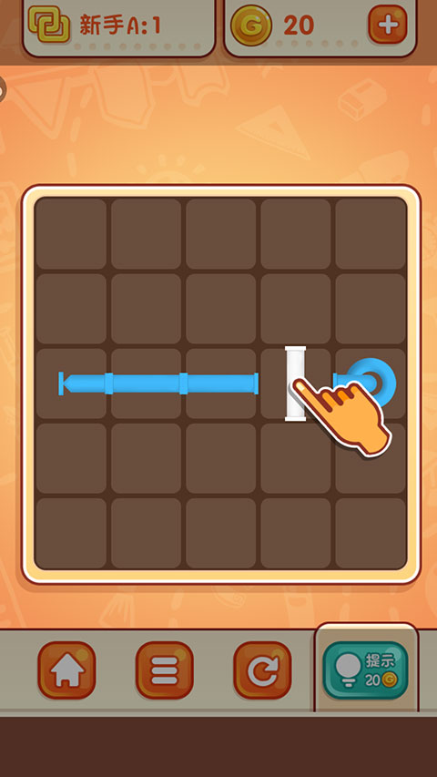 4. 接水管模式:点击旋转各类水管组件,调整其朝向,最终构建一条从起点到终点的完整通水路径。