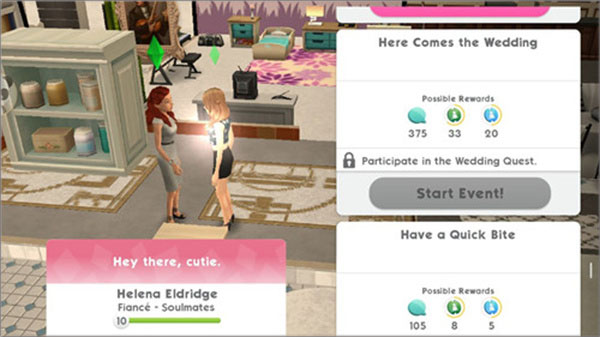 2、当两位角色亲密度达到8级并成功求婚,系统将触发婚礼剧情。此时对话框会显示“here comes the wedding”提示,同时任务栏自动弹出限时婚礼任务。